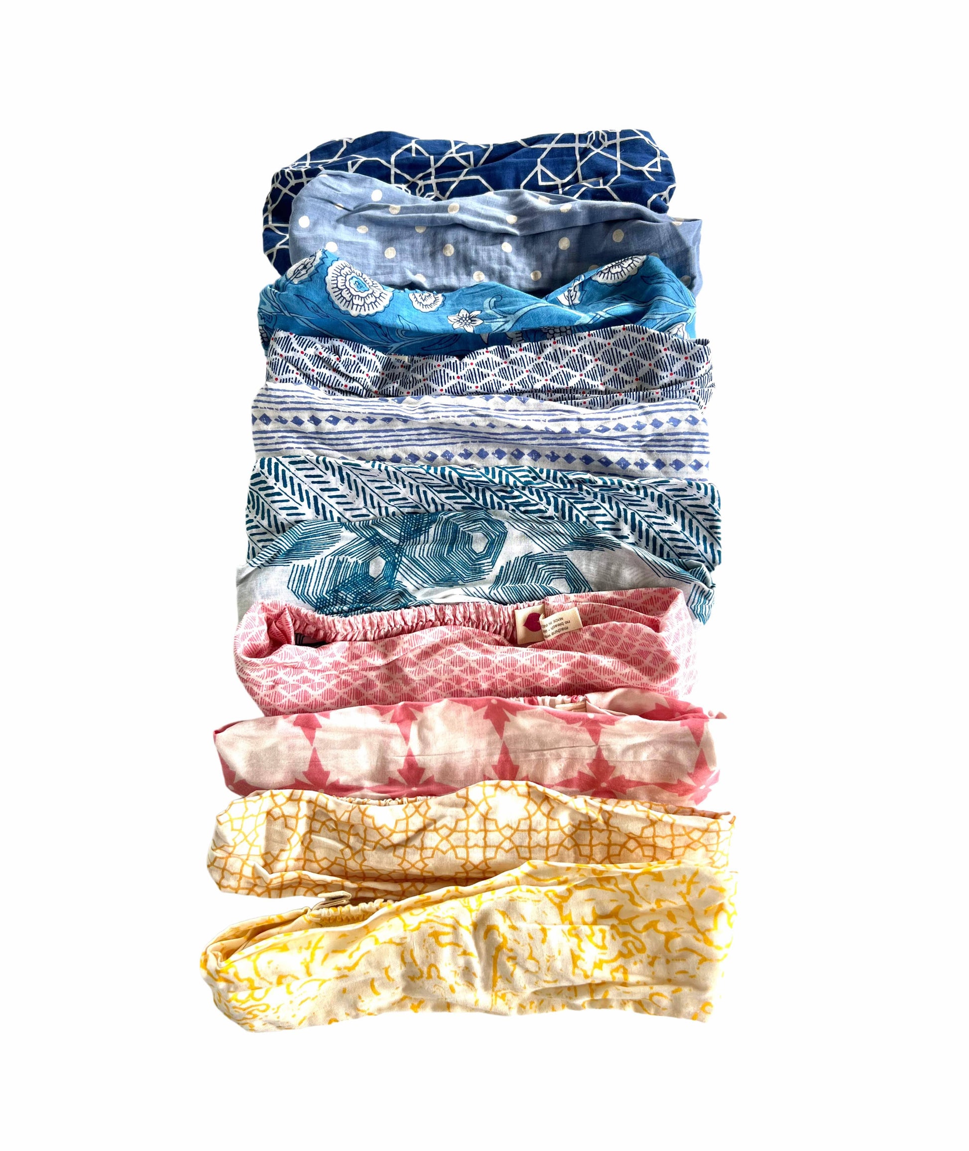Our headbands are made from the prettiest factory scraps! That's right, we up-cycle in factories and use up beautiful ends of fabric from leftover production. Great for everyday use.