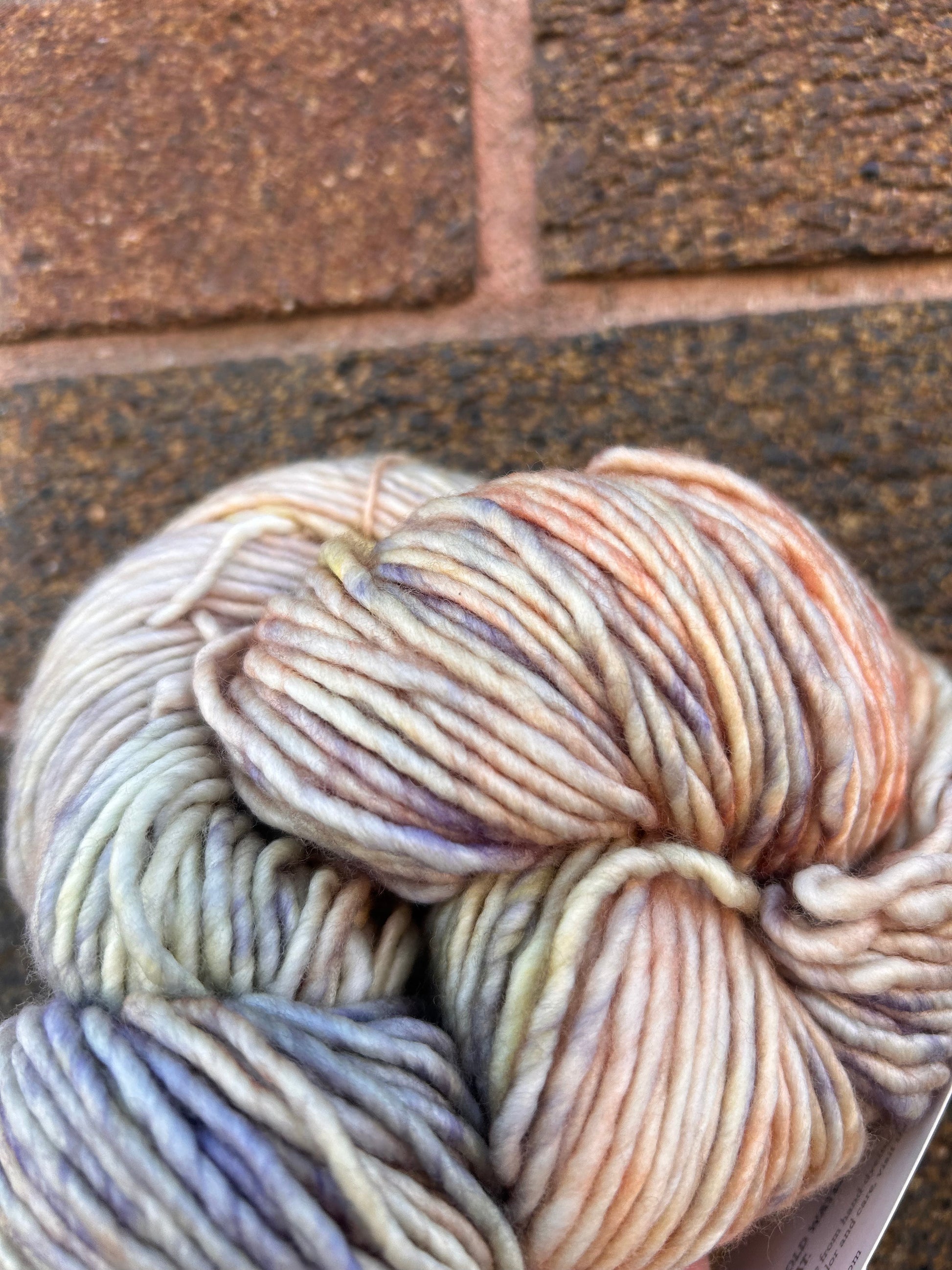A rare single-ply superwash yarn! Our superwash merino takes color in the most vivid, rich way, and nowhere is that more apparent than in the multi-layered hues of Mecha! Soft as always, Mecha has a slight thick-and-thin texture, a fantastic loft, and is the perfect size for quick but not-too-heavy projects.