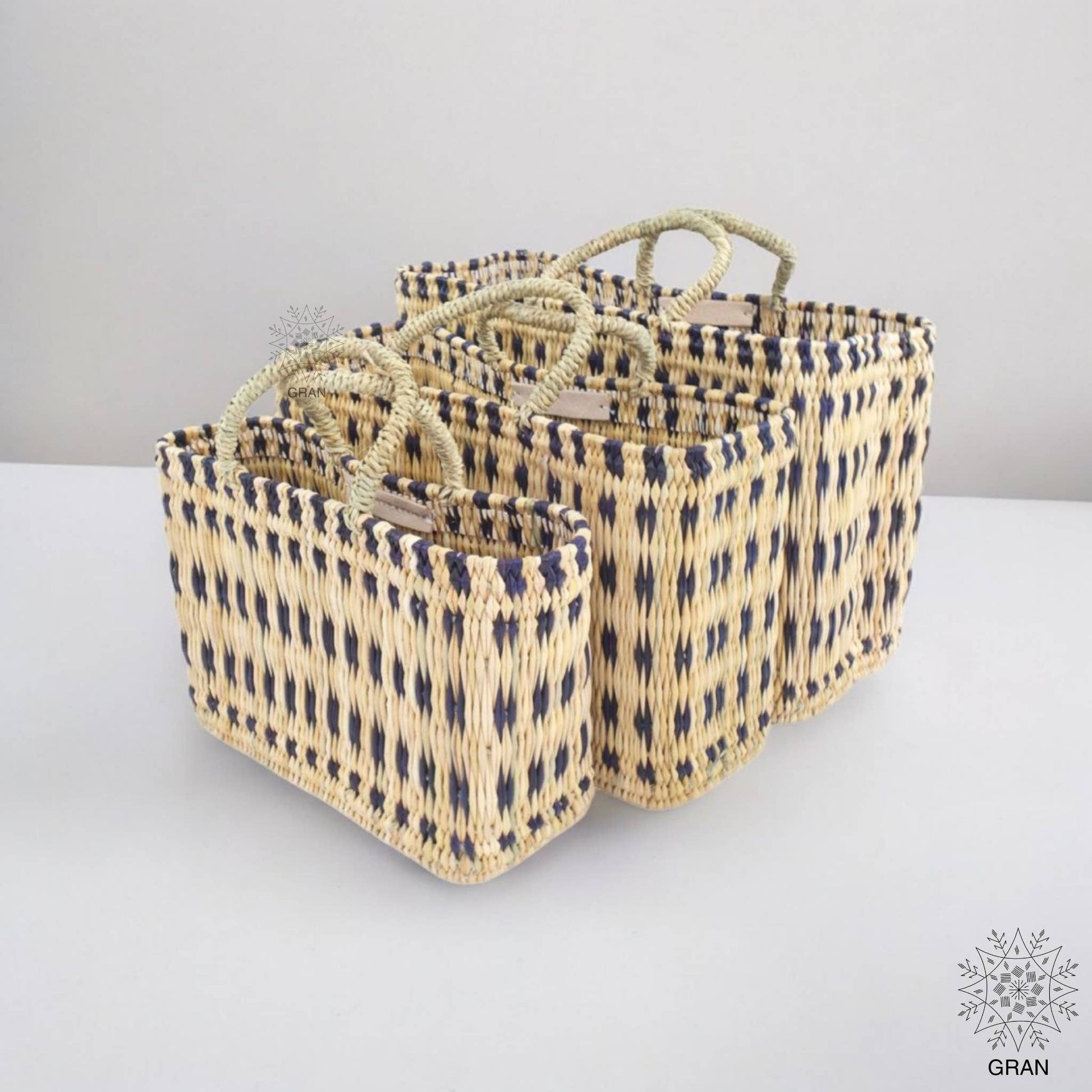 Enhance your daily routine with our charming Striped Blue Storage Bag. Ethically made using natural straw, this eco-friendly bag comes in three convenient sizes: small, medium, and large. Whether you're organizing your home, heading to the market, or planning a beach trip, this versatile set of three offers both practicality and bohemian style at an excellent price.