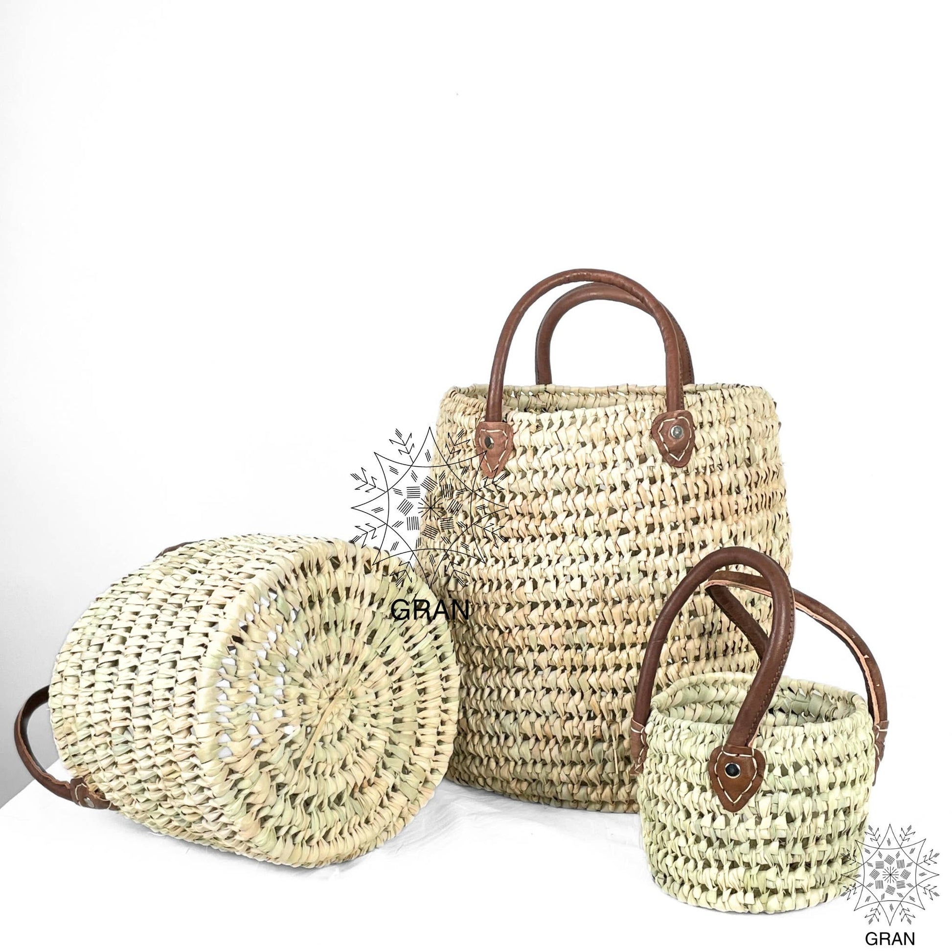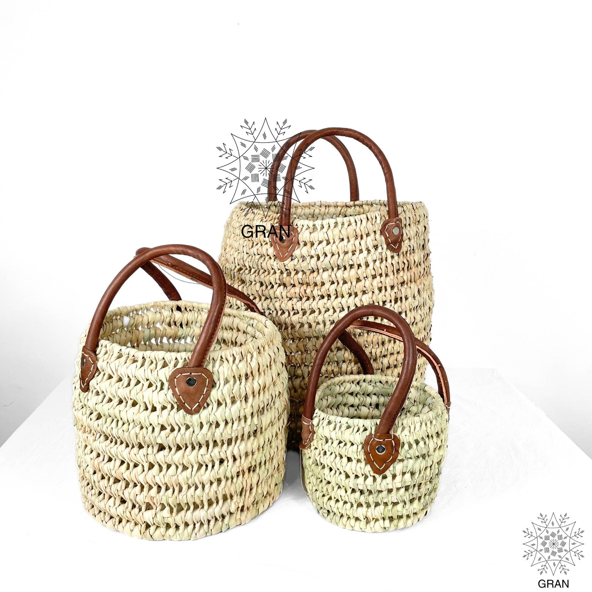 This essential storage basket combines functionality with style, perfect as a laundry basket or for adding a boho chic touch to your bathroom or laundry room. Entirely woven and featuring leather handles on each side for easy mobility, it comes in three different sizes. You can also purchase a set of all three sizes at a great price.