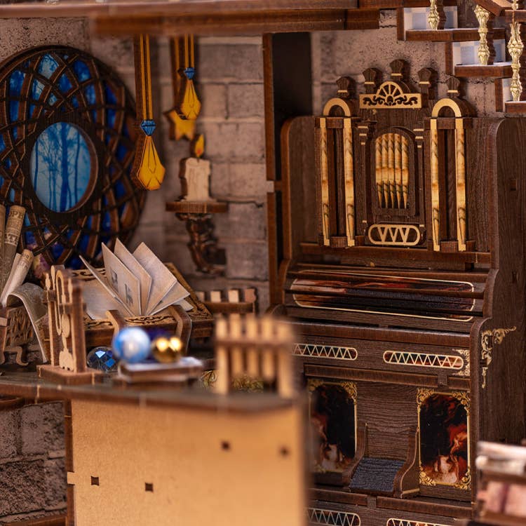 Step into the magical world with our enchanting Nebula Common Room Book Nook - a meticulously crafted homage to the spirit of learning and wisdom. Adorned with intricate details, this miniature masterpiece captures the magical world of wizards. The tiny bookshelves are lined with spellbinding tomes, and the delicate light casts a soft glow over the room, creating an atmosphere that is both cozy and academically inspiring.