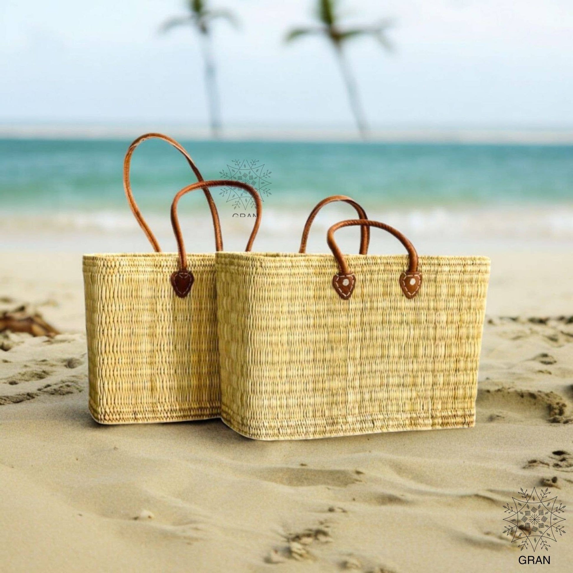 Elevate your style with our handwoven palm leaf storage baskets, featuring sturdy leather handles. Perfect for holidays, market trips, or adding a natural, boho-chic touch to your home decor. These handmade, natural, and biodegradable baskets come in three versatile sizes.