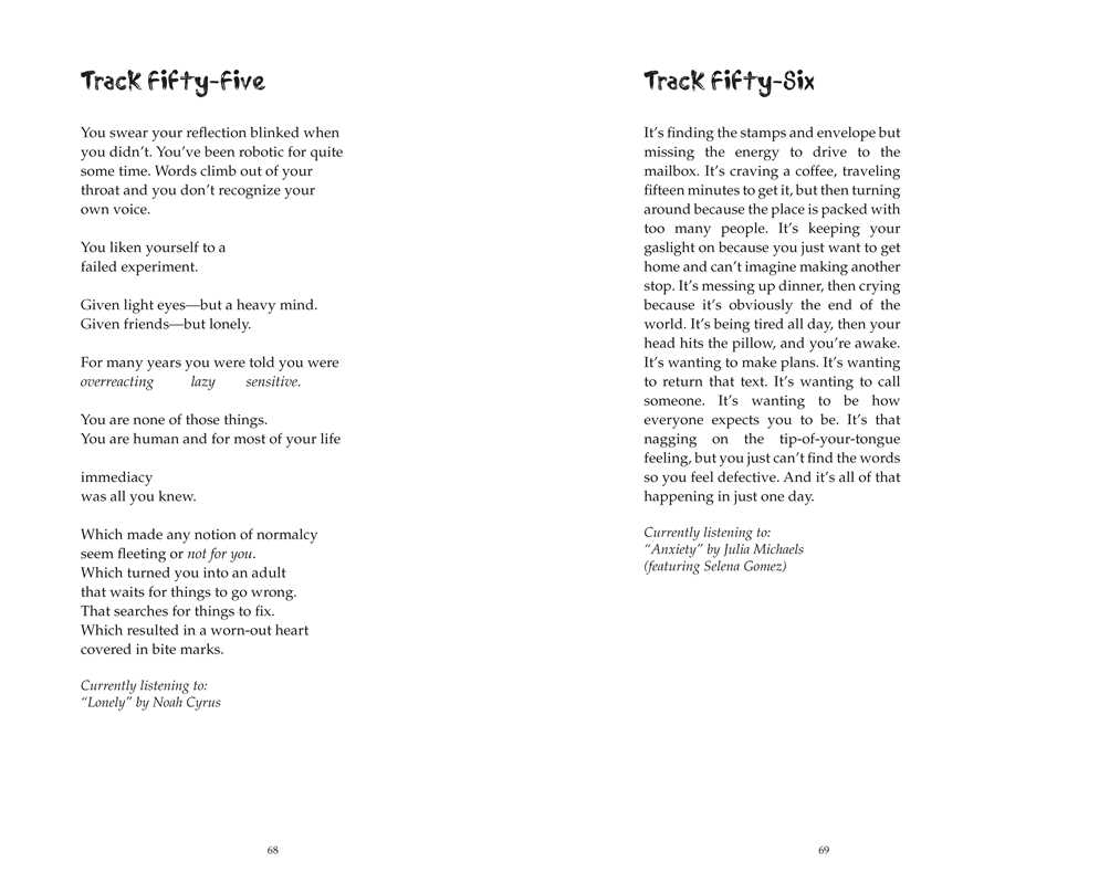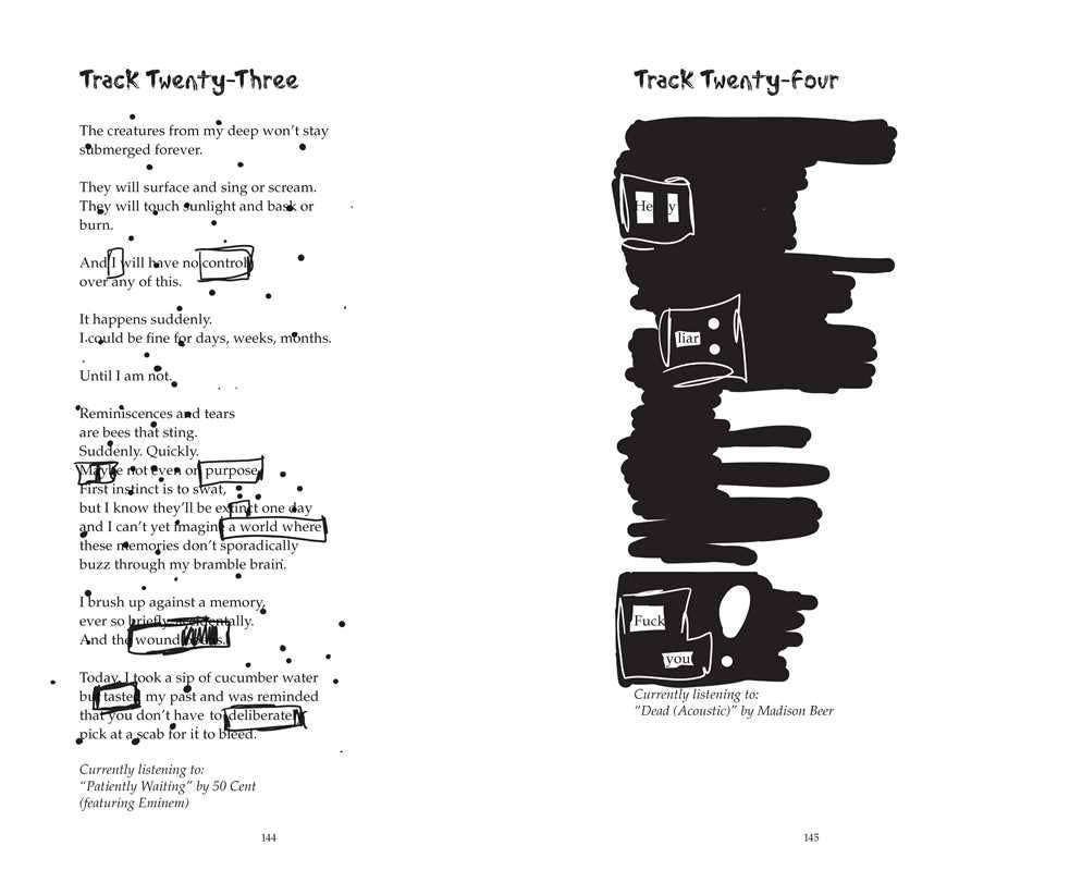 Returning to the form of Stuff I’ve Been Feeling Lately, Sorry I Haven’t Texted You Back is a poetic mixtape dedicated to those who struggle or have struggled with their mental health. Divided into two parts, “Side A” holds 92 poems, titled as “tracks,” and “Side B” holds the “remixes,” or blackout-poetry versions, of those 92 poems. The book includes the evergreen themes of love, grief, and hope. Named after Cook’s viral Instagram poem, Sorry I Haven’t Texted You Back lands in the crossroads of self-help and poetry.